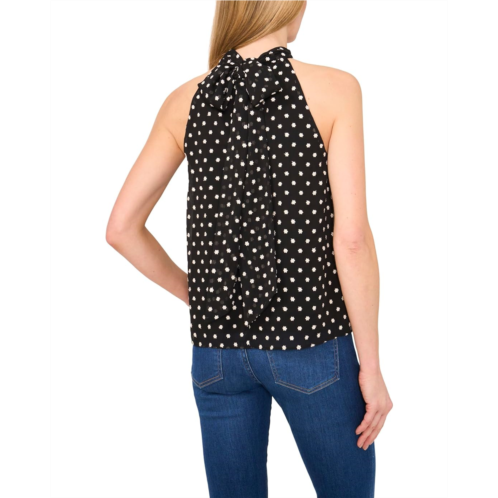Trendy and chic, the CeCe Sleeveless Halter Top With Back Bow is a must-have in your wardrobe. The pull-on style sleeveless top features a halter neck with back bow tie, ditsy embroidery, and an allover polka dot print. Crafted from lightweight fabric, it's perfect for warm weather and adds a stylish twist to any casual or evening ensemble.