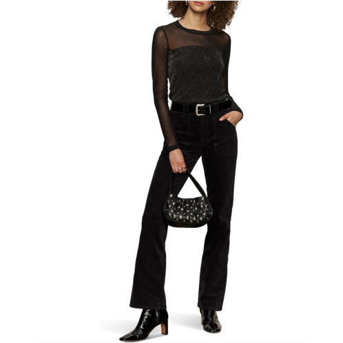 Update your casual style game wearing the simple yet stylish Sanctuary Sparkle Mesh Crew Tee. The pull-on style top features a crew neck with mesh upper body, mesh long sleeves, sparkly details, and a straight hem.