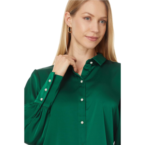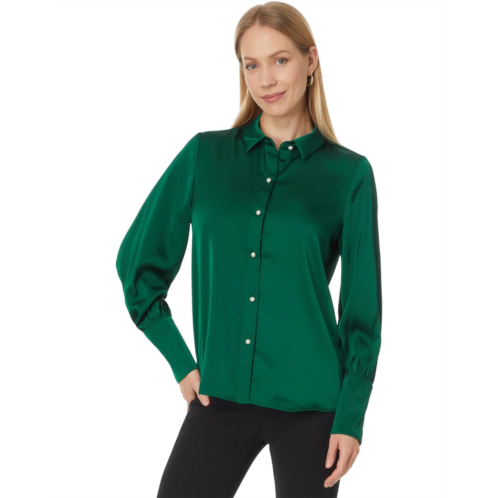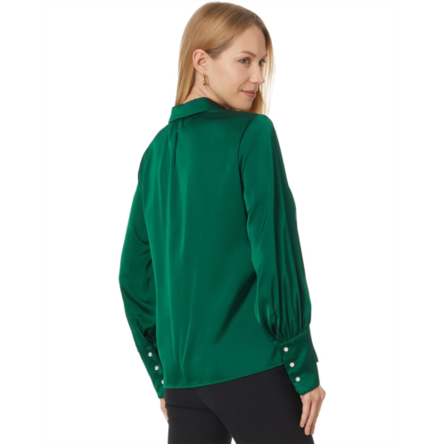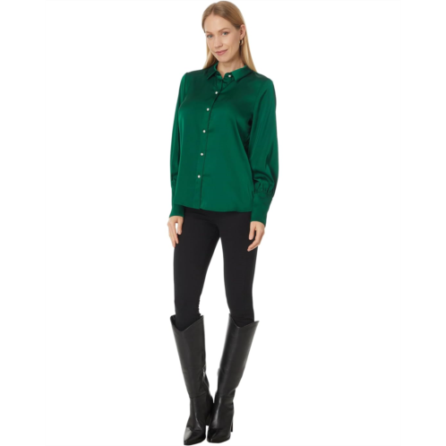 [US] CeCe Button Down Long Slv Collared Tall Cuff Blouse 353