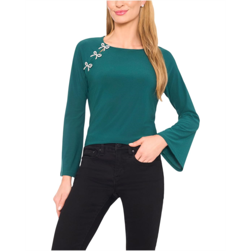 [US] CeCe Pearl Bow Applique Long Sleeve Knit Top