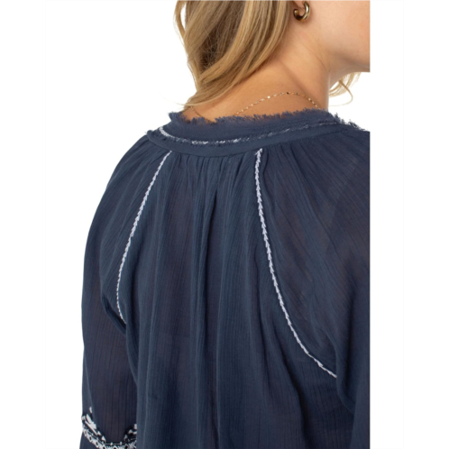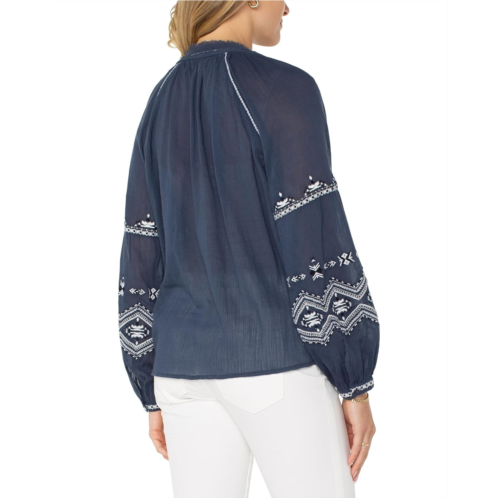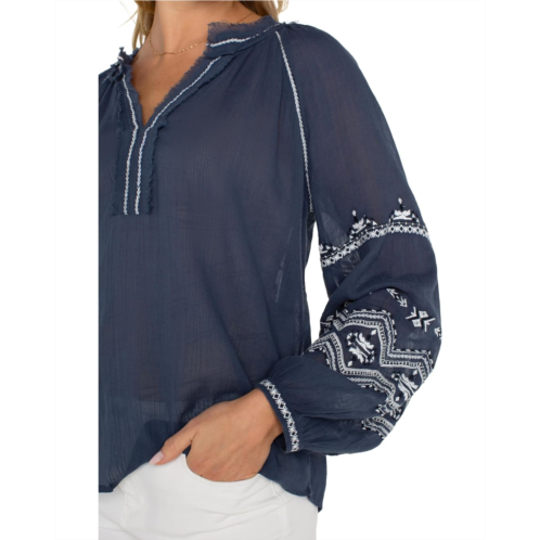 [US] Liverpool Los Angeles Long Sleeve Raglan Woven Blouse With Embroidery