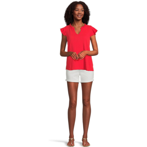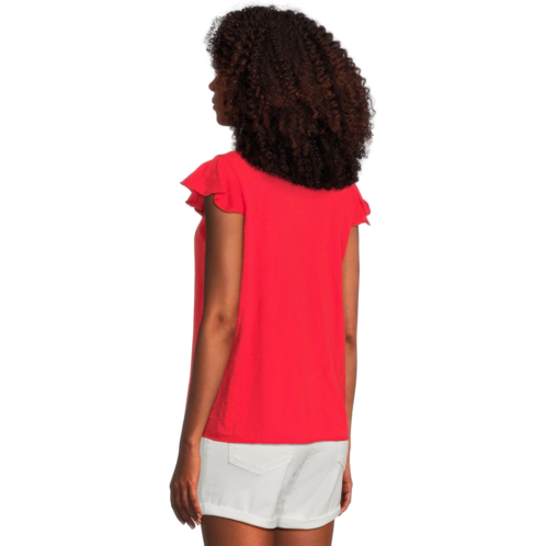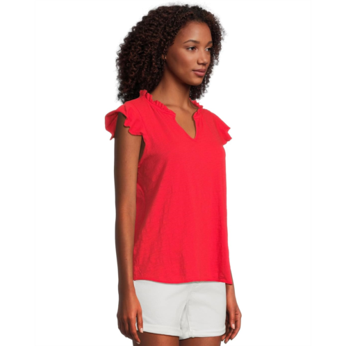 Looking for the perfect top to take you from work to the weekend? Look no further than the Mod-o-doc Sleeveless Ruffle Top! The V-neckline and ruffle detail add a touch of elegance, while the sleeveless style and straight hem keep it versatile for any occasion. Pair it with your favorite jeans or dress it up with a skirt for endless styling options.