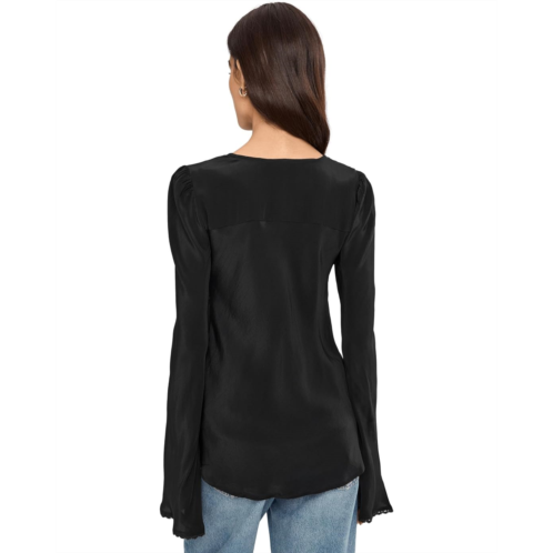 The Free People Bali Ariel Top is your passport to effortlessly chic style, blending laid-back charm with a touch of sophistication. Designed with a flattering V-neckline and a feminine tie-front closure, this top flows beautifully in its satiny fabrication, catching the light with every move. The bell sleeves and embroidered scallop trim along the bust and cuffs add an artisanal touch that channels the serene spirit of island artistry. With its pull-on design and relaxed, flowy silhouette, it's as comfortable as it is captivating, perfect for brunch dates, beach strolls, or sunset soirees.