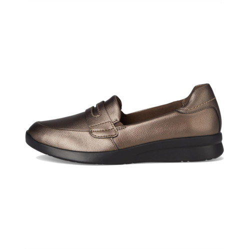 A classic penny keeper atop adds classic charm to the Clarks Ellowyn Penny Shoes. The pull-on footwear features leather upper, breathable mesh lining, and side gore panels for ease of entry.