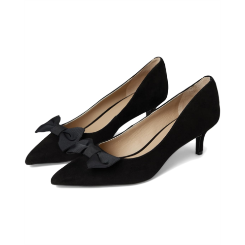 Lauren Ralph Lauren Adrienne Bow-Trim Suede Pumps bring sophistication and charm to every stride. Crafted from velvety suede, these pumps feature an ultrafeminine grosgrain bow at the vamp, instantly elevating your look with a touch of romance. The sleek leather upper and lining exude refinement, while the foam-padded insole provides all-day comfort you'll love. Designed with a graceful kitten heel, these slip-on pumps offer just the right lift for effortless style without sacrificing ease. The durable leather outsole ensures stability and lasting wear, making them a versatile addition to your wardrobe. Finished with the signature 'LRL' logo at the back, this pair embodies understated luxury with every detail.
