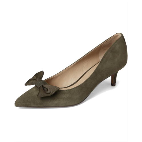 Lauren Ralph Lauren Adrienne Bow-Trim Suede Pumps bring sophistication and charm to every stride. Crafted from velvety suede, these pumps feature an ultrafeminine grosgrain bow at the vamp, instantly elevating your look with a touch of romance. The sleek leather upper and lining exude refinement, while the foam-padded insole provides all-day comfort you'll love. Designed with a graceful kitten heel, these slip-on pumps offer just the right lift for effortless style without sacrificing ease. The durable leather outsole ensures stability and lasting wear, making them a versatile addition to your wardrobe. Finished with the signature 'LRL' logo at the back, this pair embodies understated luxury with every detail.