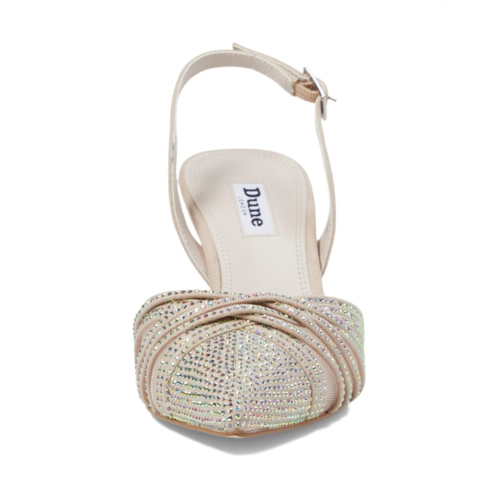 Don't sacrifice comfort for fashion donning the Dune London Cloudias. These flared stiletto heels feature adjustable slingback strap buckle closure, allover stone embellishments on the upper for shiny touch, and pointed toe design. It has synthetic and textile upper.