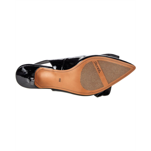 Pointed toe with bow detail on vamp in a kitten heel.