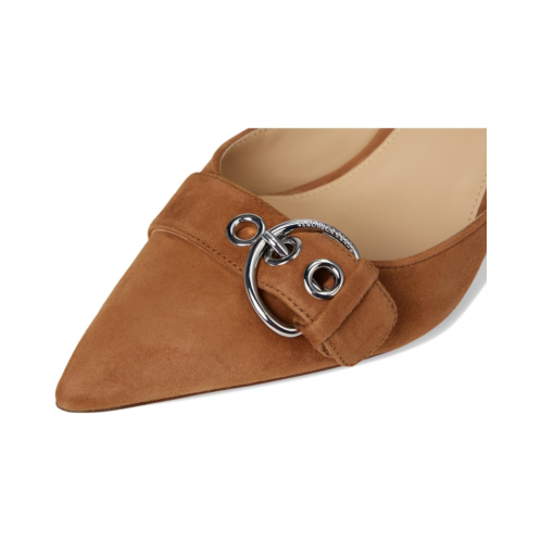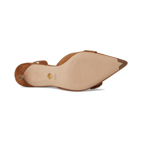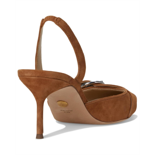 Expertly crafted from luxe suede, the Veronica Beard Roxy slingback is defined by a bold buckle at the vamp. Perfect for work and nights out, this timeless style features a mid-heel, a pointy toe design, a cushioned leather footbed, and an elasticized strap for comfort.