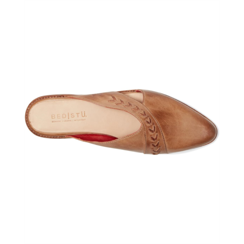 The Bed Stu Jockey shoes are mules that combine sleek design with playful details. Their leather arrow inlays in a contrasting color create a bold look, while the pointed toe shape and soft 'V' at the top of the vamp offer a flattering shape. They are made of a leather upper, cushioned insole, and breathable leather lining. Their side cutouts add a touch of fun, making them a standout style for any occasion. Effortlessly unique and full of character, these mules are perfect for adding a fresh feeling to your wardrobe.