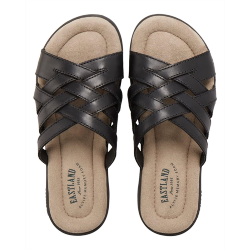 Featuring crisscross woven straps with top-stitch accents, the Eastland 1955 Edition Hazel sandals look stylish and unique. These slip-on shoes offer leather upper, round toe silhouette, fabric lining, and Eastland Exclusive Active Memory Foam comfort insole that supports and conforms to the curves of your foot.