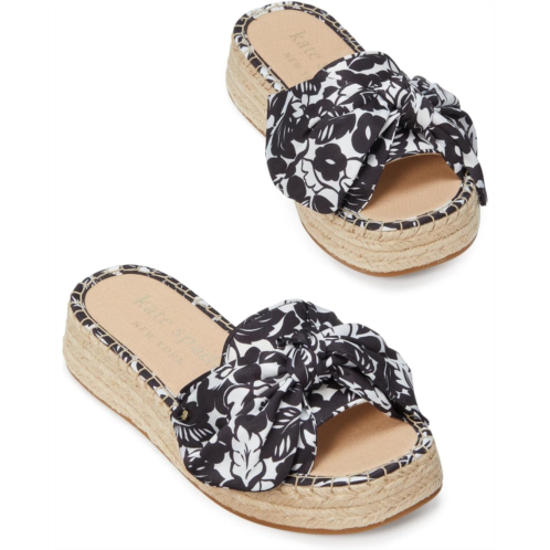 Floral printed bow with a knot brings a charming touch to the structure of Kate Spade New York Lucie Tropical Foliage Espadrille Sandals. The slip-on footwear features jute upper construction with flatform espadrille design and open square toe silhouette.