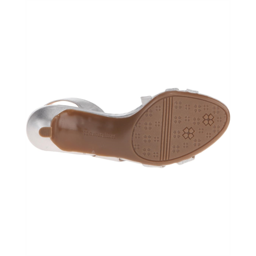 Strappy upper features leather uppers, or a glitter fabric and synthetic combo.