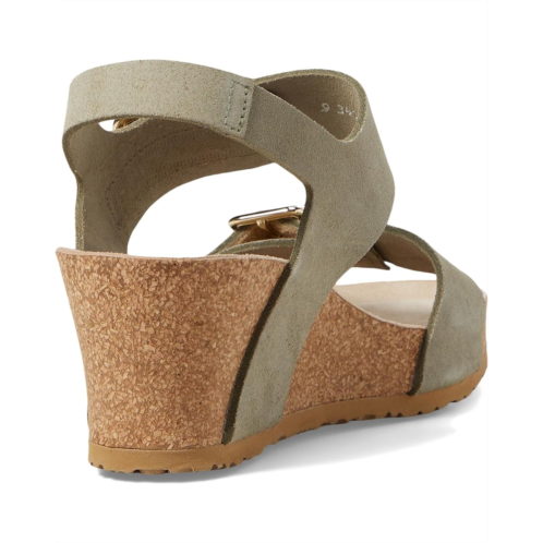Suede-covered cork footbed molds to your foot for added comfort.