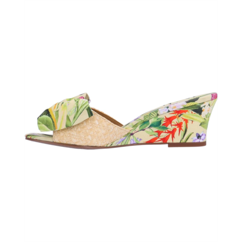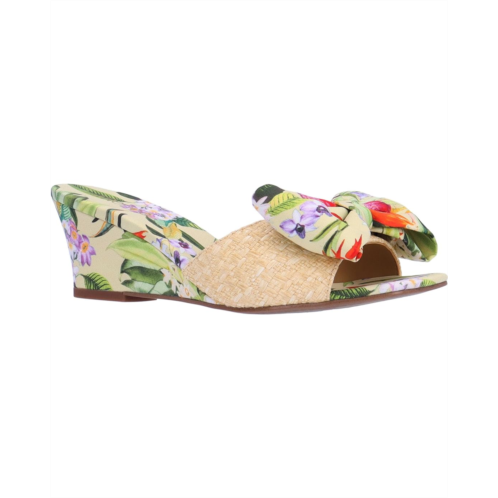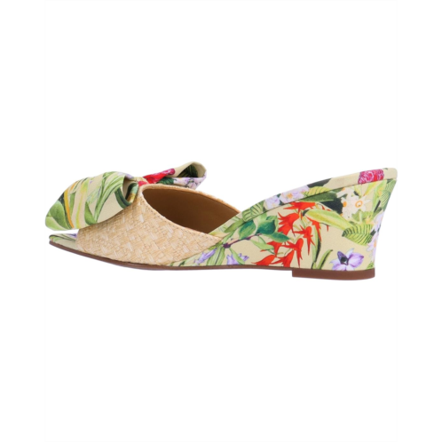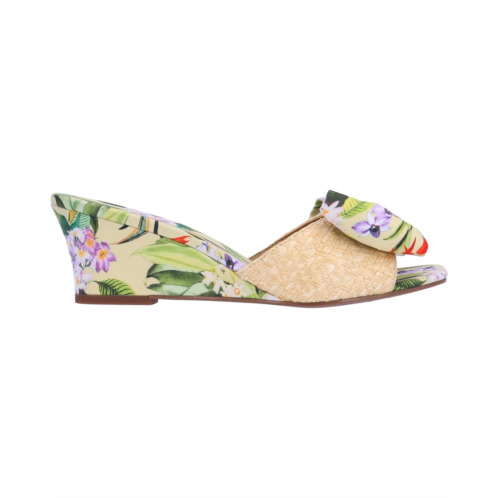 Look fabulous on every step wearing the J. Renee Milena sandal with your casual apparel. Made of polyurethane upper, the footwear features memory foam latex insole and polyurethane lining. An open toe, slip-on style, and printed wedge heel provides superior comfort. It has floral printed vamp with oversized bow detailing; making it perfect for spring collection.