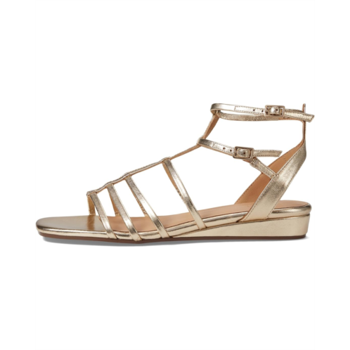 Feel the vintage-inspired look wearing the Seychelles Luxurious Metallic gladiator style sandal. Made with leather upper in a gladiator strap and double ankle strap with buckle closure, the sandal features a leather lining and padded OrthoLite sockliner. A lightweight design and gold-tone finish with wedge heel gives you freedom to dress them up or down.