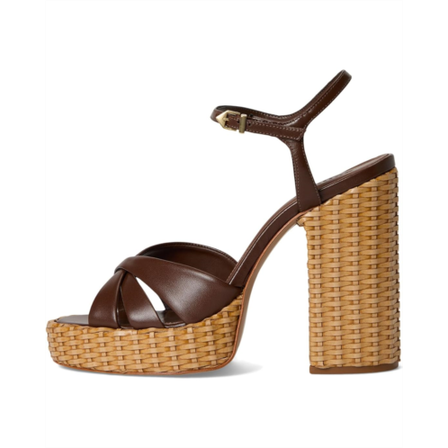 The Schutz Keefa Straw sandal boasts a high platform sole wrapped in natural straw. With a premium leather upper construction, these block heel sandals stand out with their unique texture and charm.