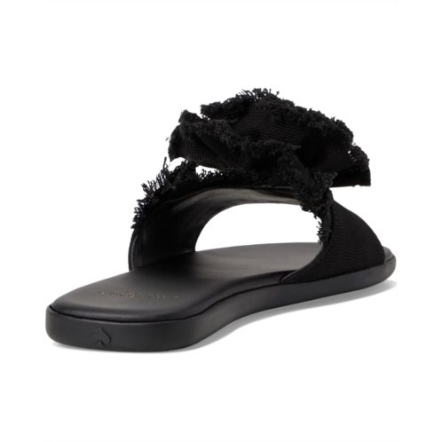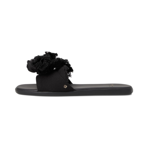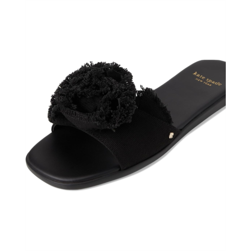 Let your look blossom in effortless style wearing the Flourish Canvas Flat Sandal from Kate Spade New York. Designed with a bold rosette accent featuring frayed edges, these slides bring a playful, feminine touch to your warm-weather wardrobe. The open square toe adds a modern edge, while the easy slip-on design ensures all-day comfort.
