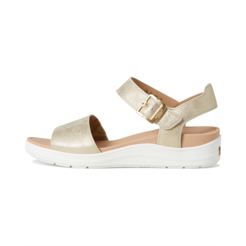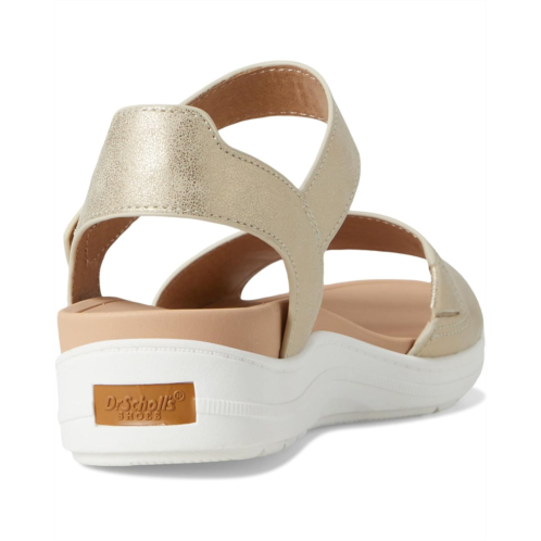 Dr. Scholl's Time Off Sky sport sandals for travel and every day inspired by our viral Time Off sneaker. It features canvas fabric vamp with low chemical faux leather straps, low chemical faux leather upper, or metallic upper with molded EVA footbed and TPR outsole. It has an ankle strap with adjustable hook-and-loop closure for easy on and off. Insole Technology with anatomical cushioning, comfort, & arch support. Sky's the limit in these women's sandals with sporty feels and all the comfort of the most-wanted Time Off travel sneakers.