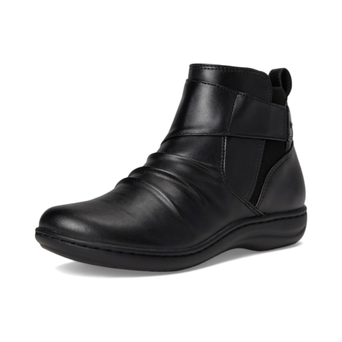 The Clarks Laurieann Park boots arrive with a classic leather-look upper with fabric inserts for a versatile, timeless look. Delivering style and practicality in equal measure, these ankle-high boots feature a ruching effect to the upper, as well as a handy zippered side closure for easy on/off. They are enhanced with a contoured Ultimate Comfort foam footbed and nylon lining, supporting every step with plush, pillowy cushioning.