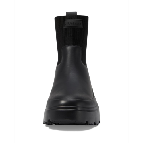 Discover the joy of urban street escapes wearing Hunter Explorer Chelsea Flatform Boots. The pull-on footwear features rubber upper construction with recycled polyester lining, footbed, and flatform midsole.