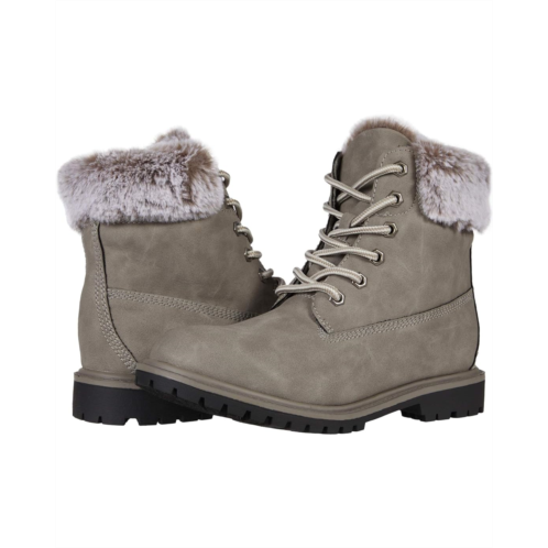 The UNIONBAY Mason boot features a faux-fur collar in a faux-leather upper.