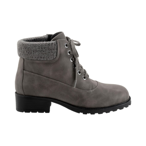 Walk in comfort and make every step count by wearing the Trotters Bellamy boots. The round-toe shoes have a lace-up with zipper closure, a mid-calf silhouette, flat heels, and a knit topline. The boots have a nylon upper with latex insole and comfortable lining that supports prolonged wear.