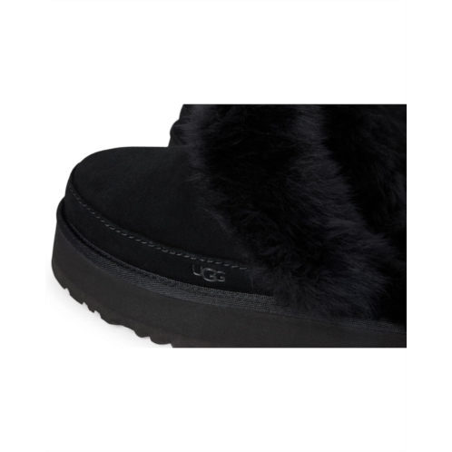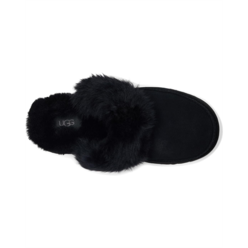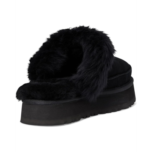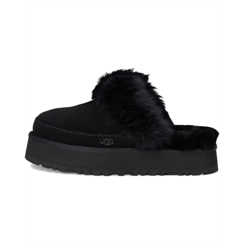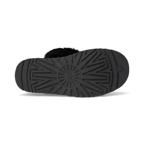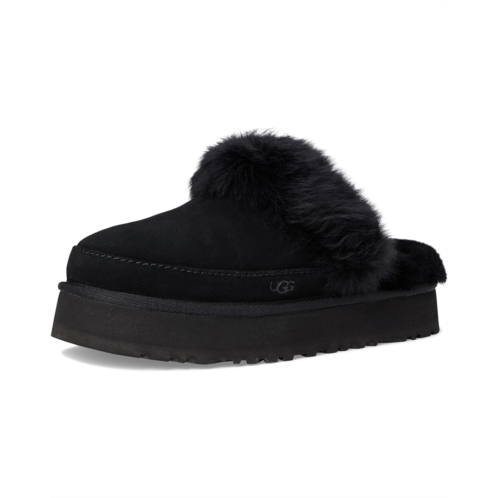 When the weather outside is frightful, the Disquette Chalet is so delightful. This decadent slipper delivers surrounding warmth, from the sheepskin insole and UGGplush lining to the fluffy sheepskin collar. Designed to be worn both indoors and out, it's set upon a 1' platform made from lightweight (and super cushy) sugarcane ethylene vinyl acetate.