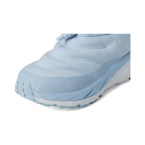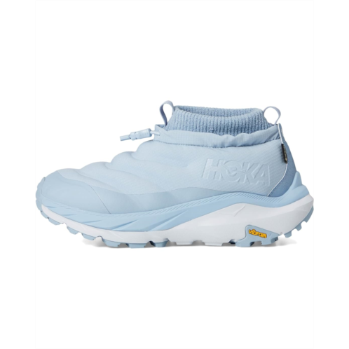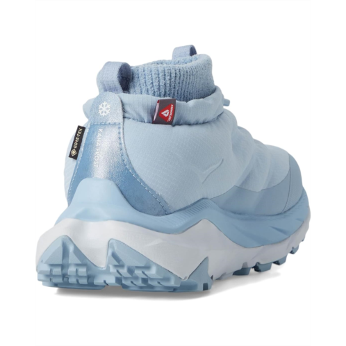 The Hoka Women's Kaha 2 Frost Moc GTX boots are plush cold weather-ready boots that come with stuffed quilted panels with 300g PrimaLoft Black insulation for all-day comfort and warmth. These hiking boots are made of a 91% recycled ripstop polyester upper, polyurethane insole, and a stretch-fleece top collar with 35% recycled polyester. The quick-lace toggle closure with recycled bungee laces offers a secure fit while the waterproof GORE-TEX membrane and water-repellent finish keep your feet dry and toasty. These lace-up boots are cold-weather rated to -32°C/-25°F.