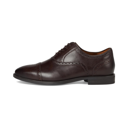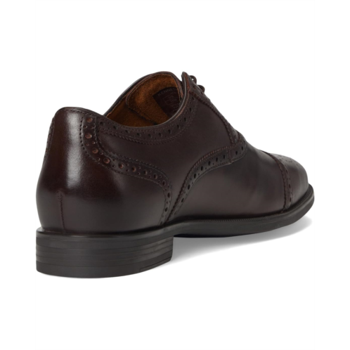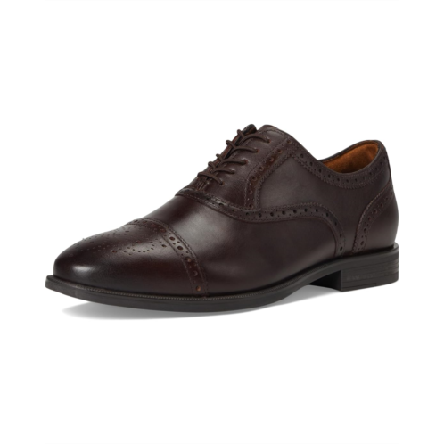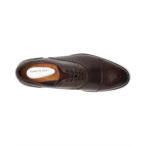 The Kenneth Cole New York Future Pod men's leather wingtip lace-up oxford features a triple-layer cushioning midsole, a high-recovery gel pod and impact pods embedded in the sole for superior flex and shock absorption. These almond toe shoes offer a textile lining and a removable cushioned ethylene vinyl acetate insole.
