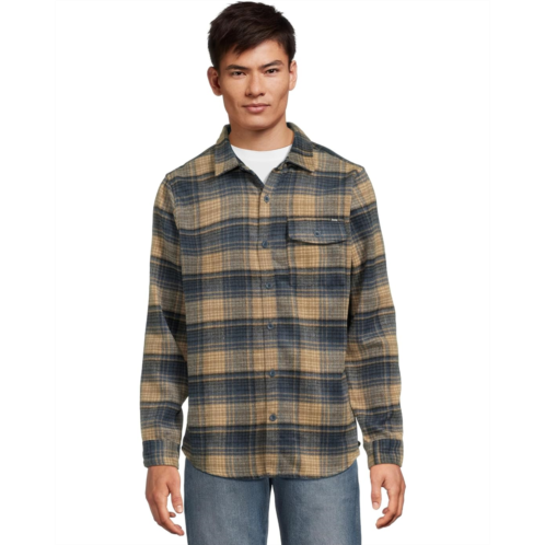 A part of the BUILT collection, the Hurley Portland Heavyweight Flannel shirt blends tough durability with everyday comfort. Built to move and to last, this plaid shirt is designed with long sleeves, buttoned cuffs, a collared neckline, and a scalloped hem. Its buttoned front closure with recycled polyester buttons ensures easy wear. The pleats at the back yoke ensure mobility. This button-down shirt is styled with a built-in clip and woven back neck label.