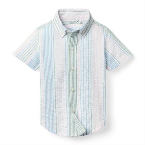 Their sunny day look is all set with our striped shirt in pure cotton seersucker. Featuring tailored details, like collar point buttons.