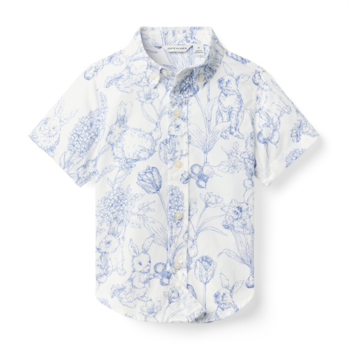 The best bunnies for our crisp cotton poplin shirt. Featuring a spring-inspired toile with tailored details to love, like collar point buttons.