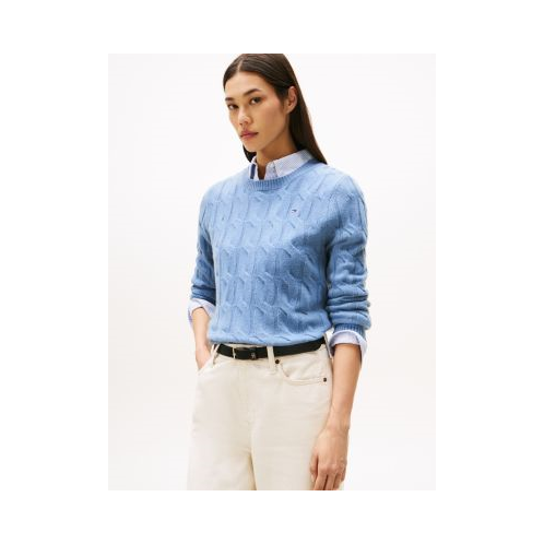Tommy Hilfiger women's sweater. Go from workdays to weekends seamlessly in this versatile crewneck sweater, made from super-soft pure wool in a classic cable knit.