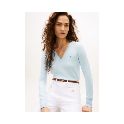Tommy Hilfiger women's sweater. Made from a silky-smooth viscose blend, our versatile V-neck sweater is the wear-anywhere layer you'll be reaching for all season.