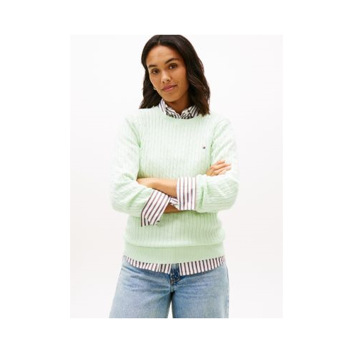 Tommy Hilfiger women's sweater. Made from premium cotton in a flattering, easy fit, our lightweight, long-sleeve cable knit sweater is a soft, comfortable layer.