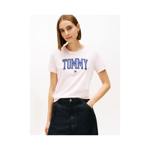 Tommy Hilfiger women's T-shirt. Made from a breathable cotton-jersey knit with a smooth, soft feel and excellent stretch, our tee is super comfortable. This iteration is finished with a collegiate-inspired Tommy logo.