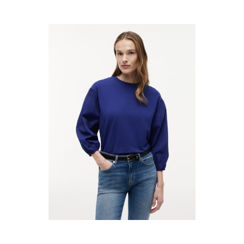 Tommy Hilfiger women's T-shirt. Made from a lightweight, stretchy cotton-viscose blend, this tee is detailed with structured puff sleeves in crisp poplin and elastic cuffs for a polished finish.