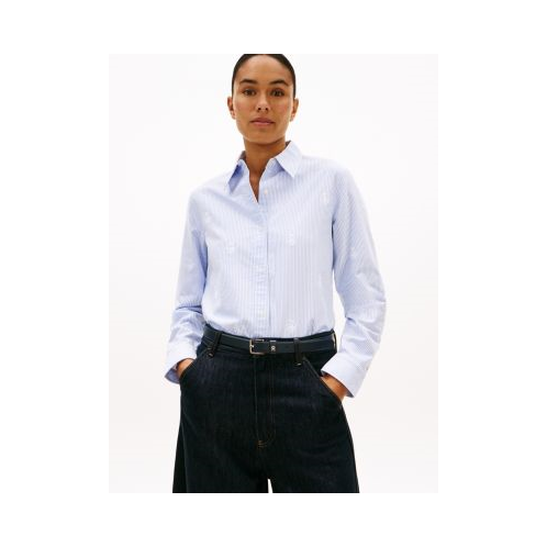 Tommy Hilfiger women's shirt. Shirting made with Oxford cloth is soft, breathable and durable. This one is designed with allover crest logo embroidery that adds an elevated signature touch.
