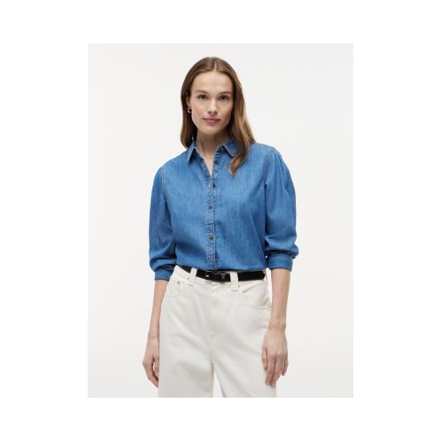 Tommy Hilfiger women's shirt. The lightweight chambray shirt is a key part of the Hilfiger heritagejust as relevant today as it was in 1985. This version is made from a lightweight cotton-lyocell blend with puff sleeves for a fresh, contemporary feel.