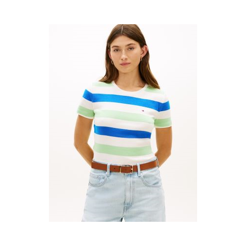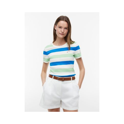 Tommy Hilfiger women's T-shirt. Bold rugby stripes lend a sporty feel of this comfy cotton tee.
