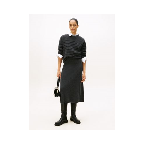 Tommy Hilfiger women's skirt. Knit from premium wool with a soft, warm feel, this midi skirt is ready for the transition to colder temps. It's cut with a flattering A-line silhouette and finished with a rib-knit elastic waist for comfort.