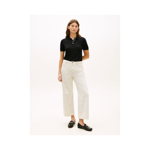 Tommy Hilfiger women's jean. Cut in a streamlined wide leg silhouette with a flattering high-rise waist, these jeans are made from rigid denim that conforms to your body with each wear and wash for a unique custom fit. Designed with railroad stripes, this pair has a classic workwear vibe, hinting at origins in traditional maritime and railway uniforms.