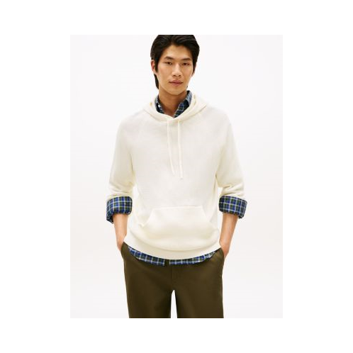 Tommy Hilfiger men's sweater. Our raglan-sleeve hoodie sweater layers effortlessly for an elevated, sporty look. Made from combed cotton, it stays soft, breathable and durable wash after wash.