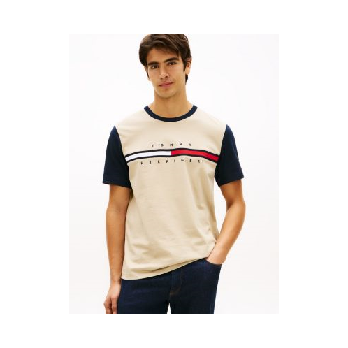 Tommy Hilfiger men's T-shirt. A must-have for your casual wardrobe, this pure cotton tee features contrast sleeves and our statement flag logo.