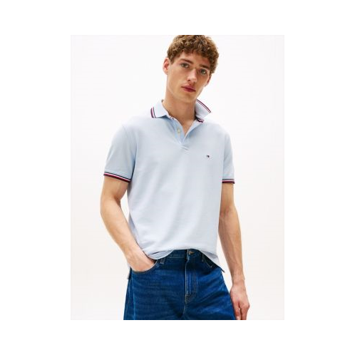 Tommy Hilfiger men's polo. A fresh spin on tradition, this regular-fit polo is made from quick-dry, wicking fabric with ultraviolet protection and features our signature stripe tipping at the cuffs and collar.