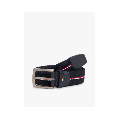 Tommy Hilfiger men's belt. Show some brand love with this signature stripe belt, made from stretchy elastic weave that adds texture to your look.