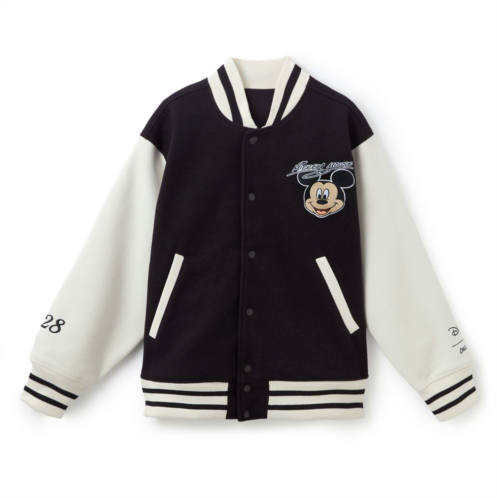 Sport your Mickey Mouse pride when you team up with this vintage-inspired varsity jacket by Cakeworthy. This stylish collegiate wear gets a character cameo with an embroidered Mickey face applique on the chest and a big, bold Mickey Mouse applique at the back so there's no mistaking who ''The Original'' is.