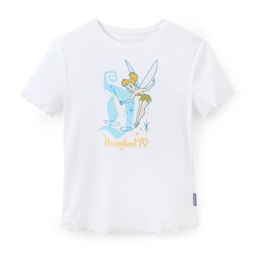 Celebrate 70 years of magic with thisDisneylandResort Tinker Bell tee featuring your favorite fairy. The scalloped hem and sleeves create a feminine silhouette while a touch of glitter commemorates the special occasion.