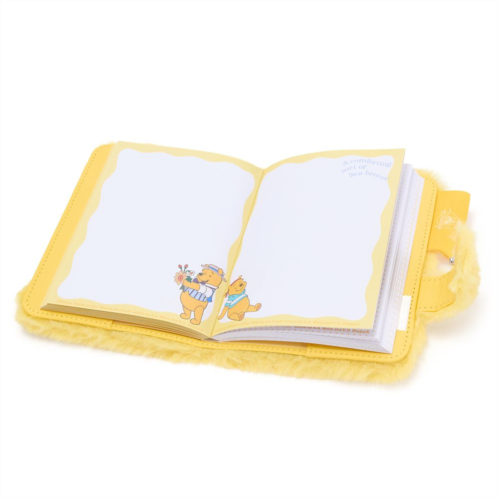 Brighten up their day with a Winnie the Pooh plush journal. The soft faux fur cover and embroidered patch will cheer up friends near and far. It matches perfectly with the Winnie the Pooh Plush Bobble-Head Pen (sold separately).